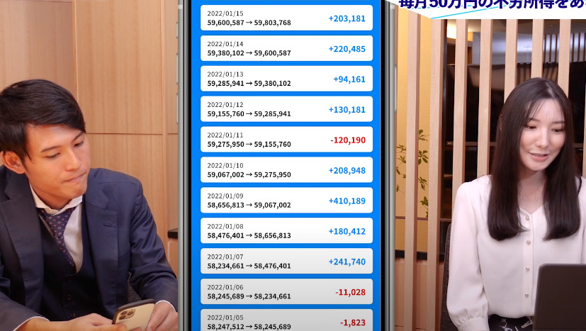 動画内には、このように実際に稼いだという取引画像が出てきます。