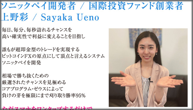 メールアドレスを登録すると、開発者&ファンド創業者という【上野彩(うえのさやか)】という人物からメッセージが届きます。