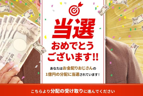 「お金配りおじさん」の一億円分配に当選といった内容のサイトがありました。