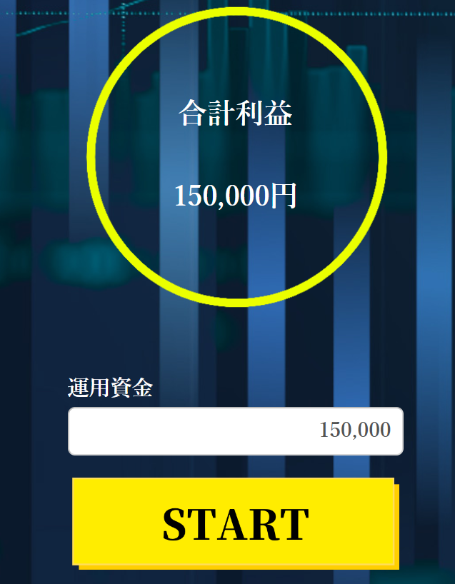取引スタートボタンを押すと、あらかじめ15万円と記載された部分が