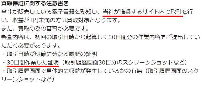 買取保証についての説明文に、【当社が推奨するサイト内で取引】という文言があります。