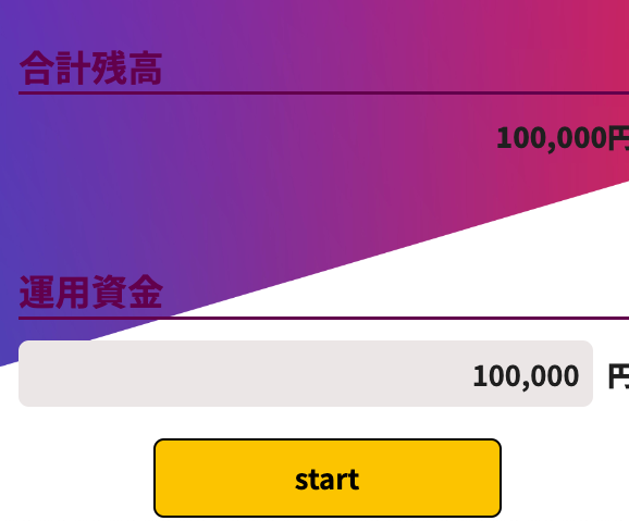 そして簡素なページに案内され、スタートボタンを押すと資産が増えていくように見える内容でした。