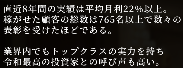 「表彰を受けた」 「業界内でトップクラス」 「令和最高の投資家」という記載がありました。