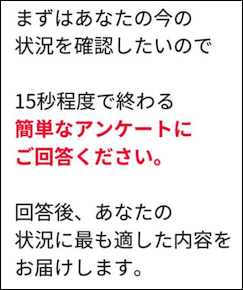 LINEに追加すると、アンケートと称していろんな質問が来ますが、どれを押しても結果は同じです。