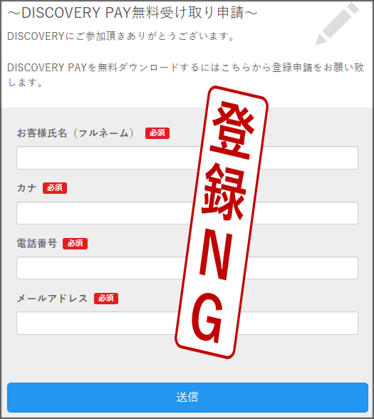 そして、「DISCOVERY PAY(ディスカバリーペイ)」というアプリの無料受け取り申請をして下さいとフォームが送られてきました。