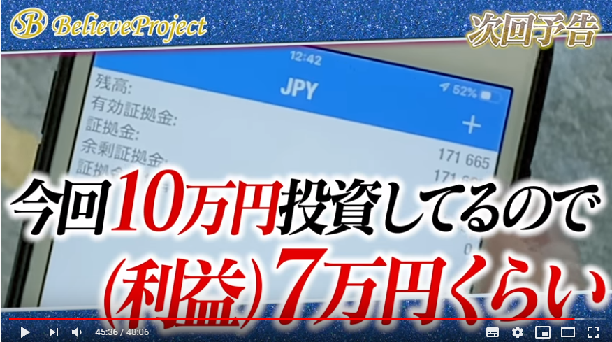 【BelieveProject(ビリーブプロジェクト)|梶沢佑(かじさわゆう)】の内容がよく分からないですが、動画の中にFXのチャートが写りこんでいました。