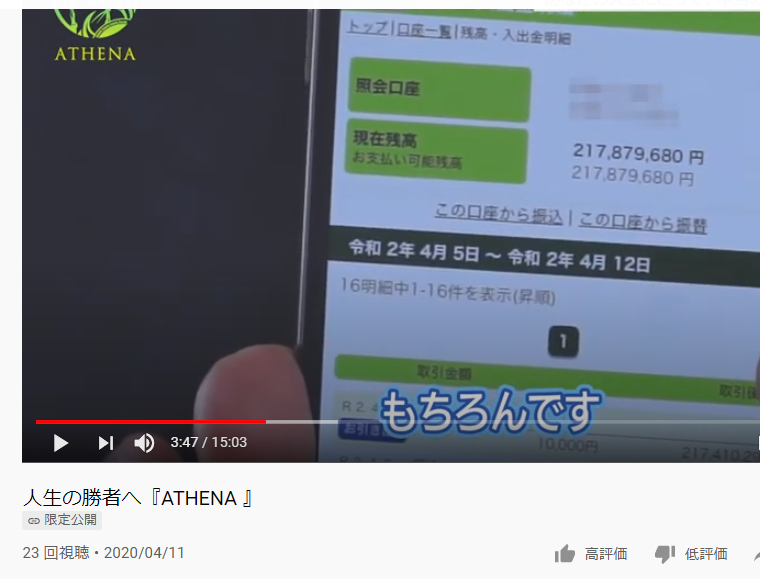 というものです。アテナ(ATHENA)は、アプリのようですね。ただし、毎日5万円というのは非常に胡散臭いですよね。