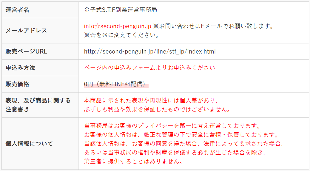 そして、この特商法に見覚えがありましたので、調べてみたところ、【S.T.F副業|金子匡寛(かねこまさひろ)】とほぼ同じでした。