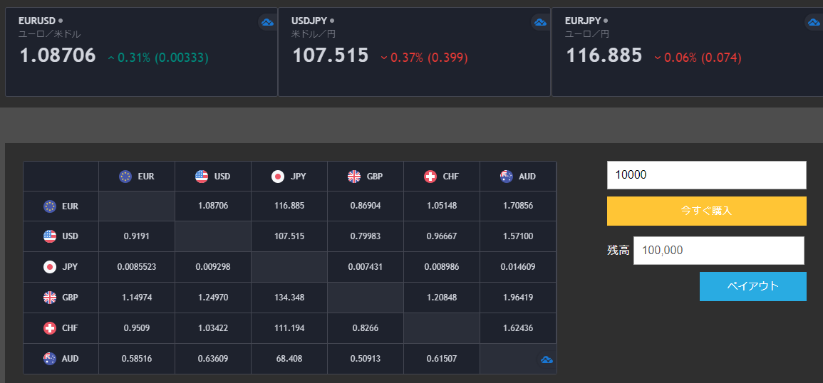 ただ、これはただのV2 systemが作ったバイナリー取引のデモサイトであり、残高が10万円もあるようにみえますが、実際には何も出来ません。