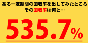 そして、回収率は535.7%と謳っています。根拠は??と思いますが、こういうサイトに根拠を求めても無駄ですね!