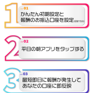 また作業内容として初期設定と口座設定、平日にアプリをタップというのがありました。