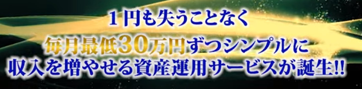 最低毎月30万円の資産が増えるそうですが、掛け金はいくらなのかは不明です。