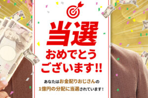 送られてきた案件の中に、「お金配りおじさんの1億円の分配に当選されています」と言ったものがありました。