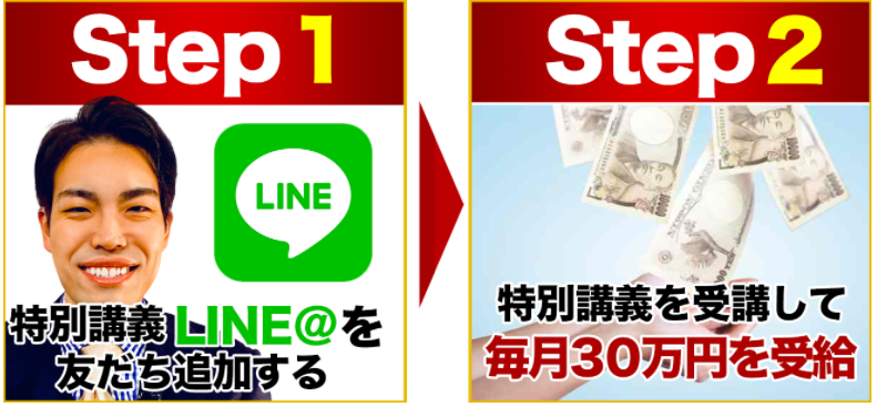 無料で学ぶだけで毎月30万円が受け取れるようになるという内容ですね。